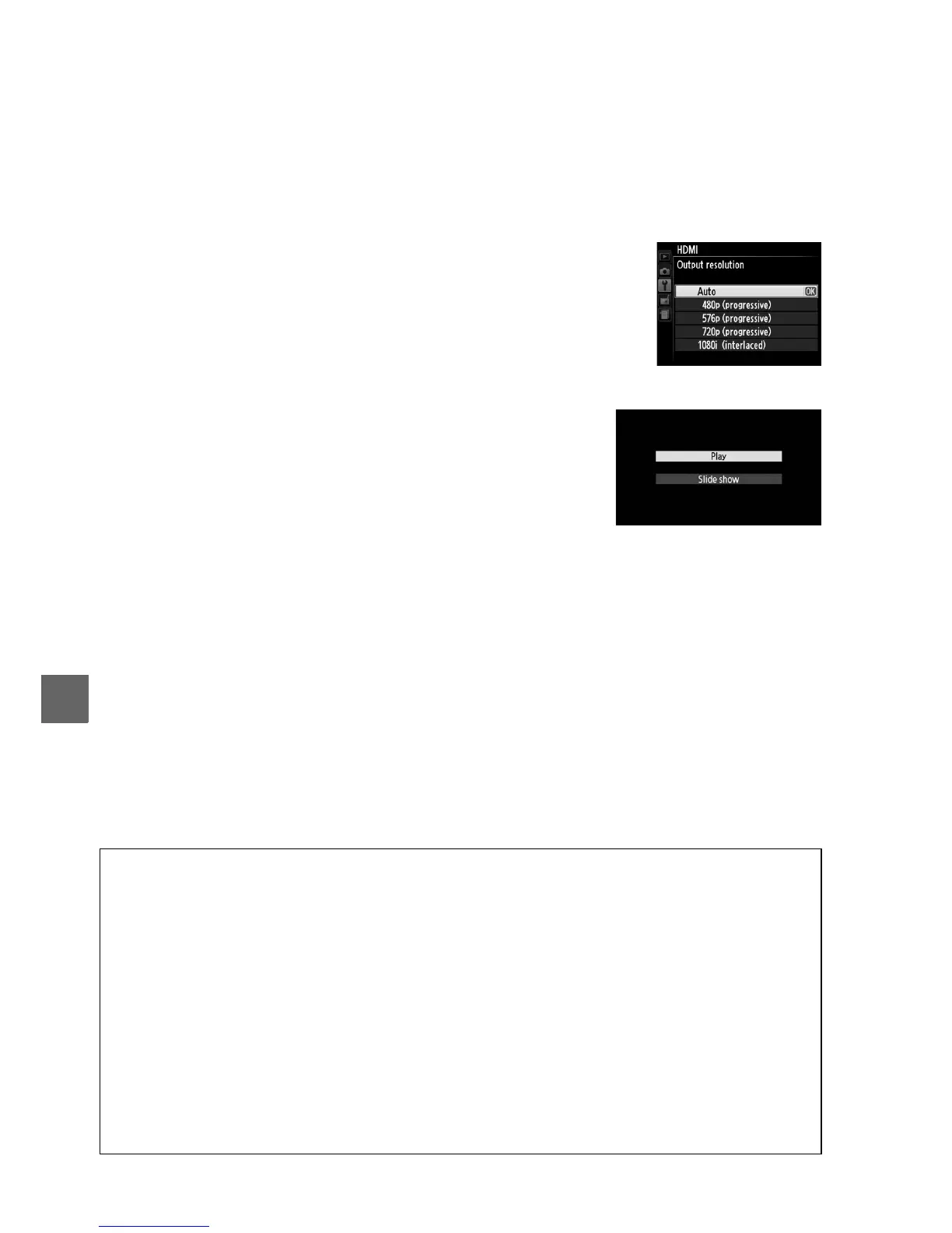 During movie recording and playback, HDMI output is adjusted according to the
