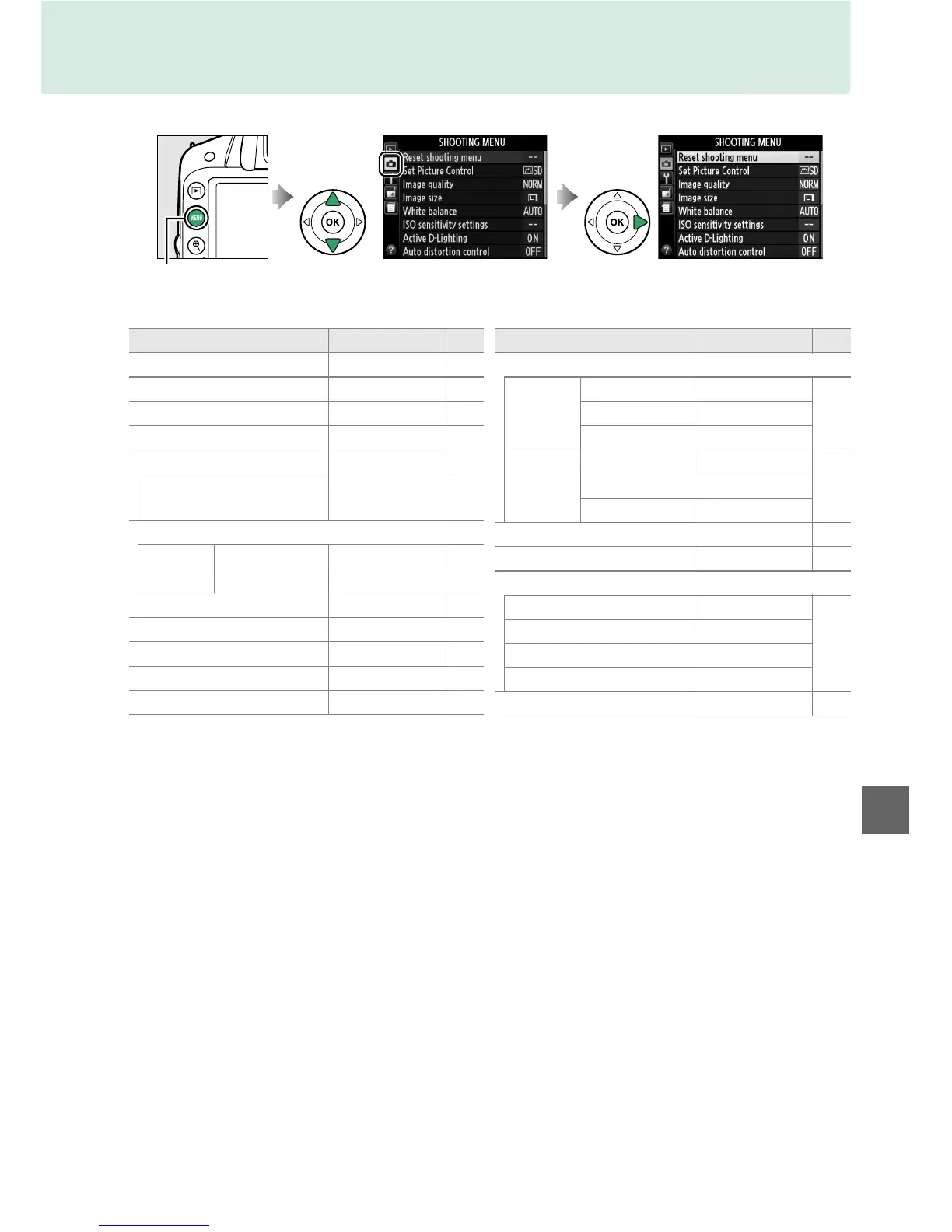 To display the shooting menu, press G and select the C (shooting menu) tab.