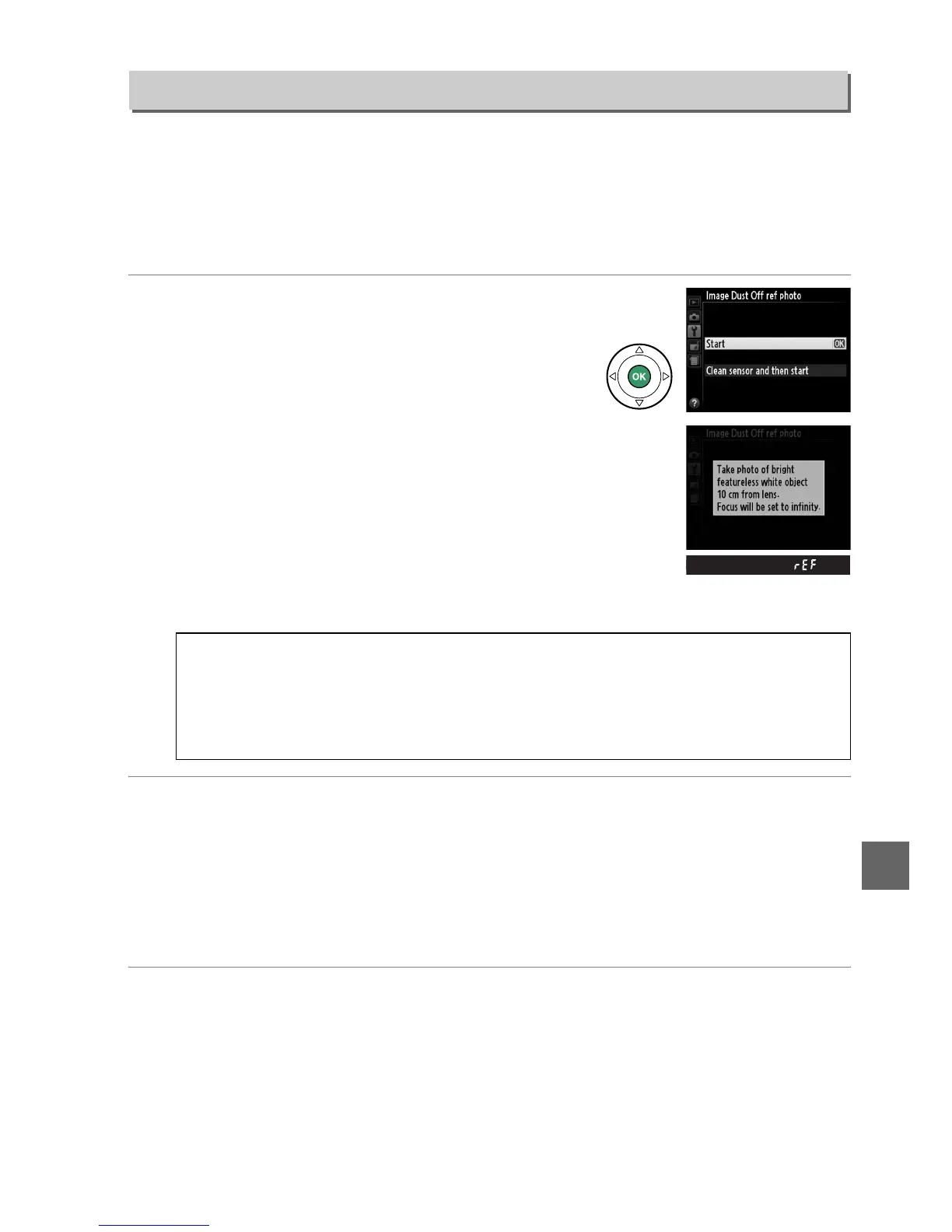 Image Dust off ref photo is available only when a CPU lens is mounted on the