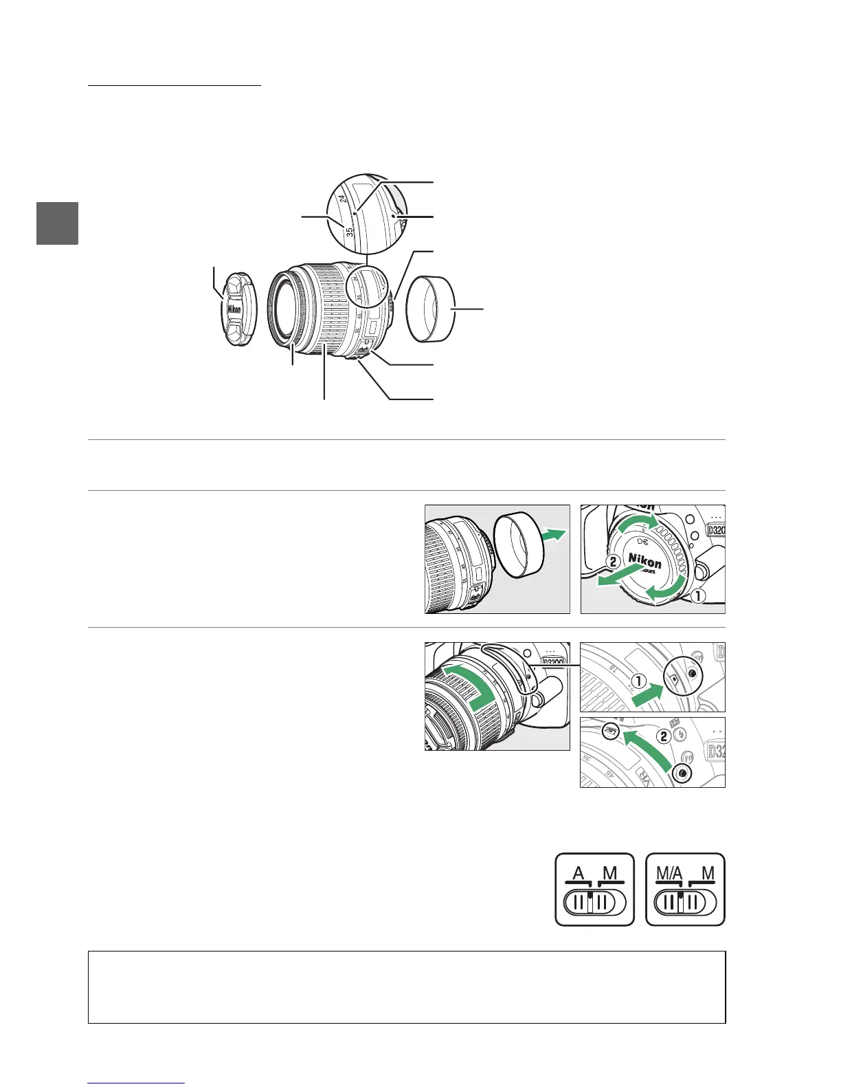 The lens generally used in this manual for illustrative purposes is an AF-S