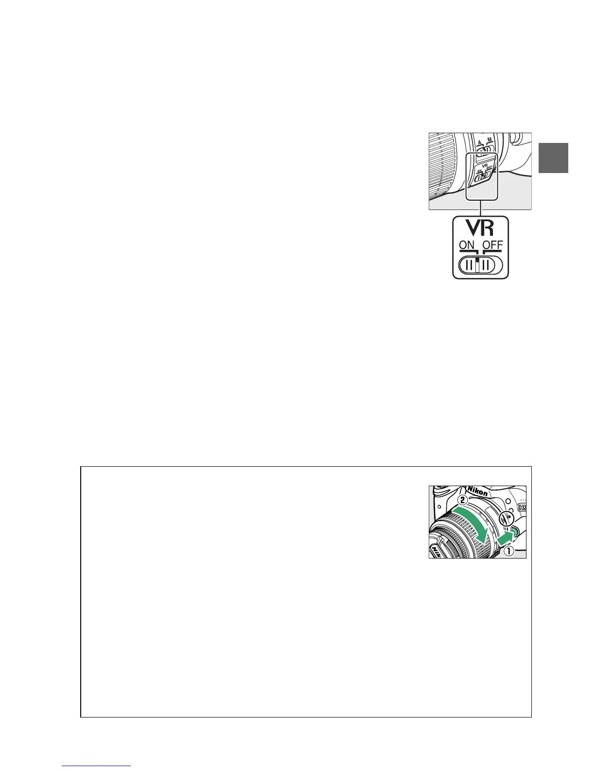 Do not turn the camera off or remove the lens while vibration reduction is in effect.