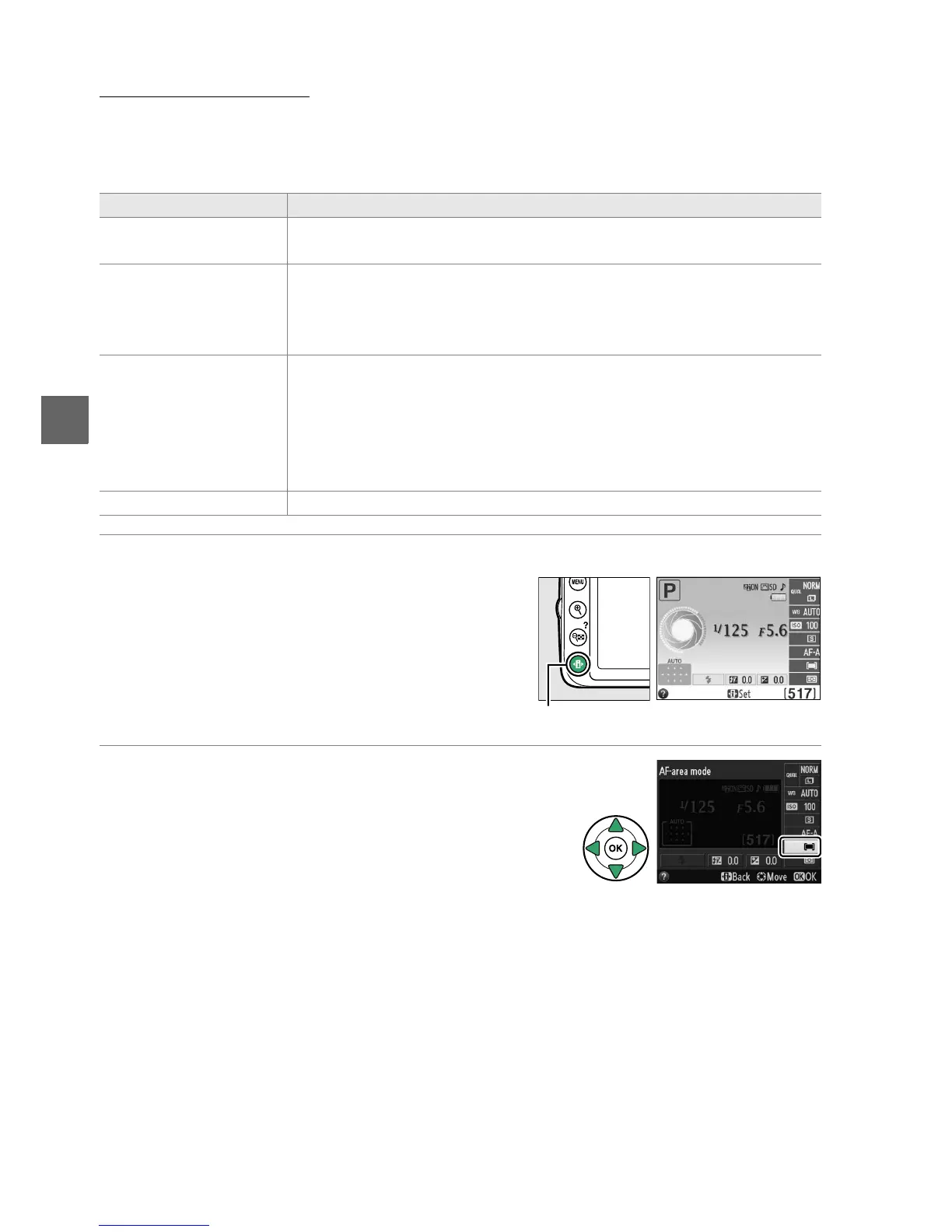 AF) and f (3D-tracking (11 points)) are not available when AF-S is selected for