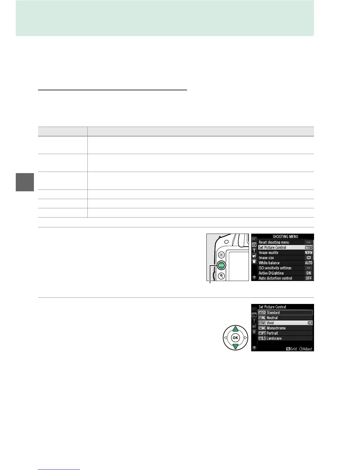 Picture Control according to the subject or type of scene (in other modes, the camera