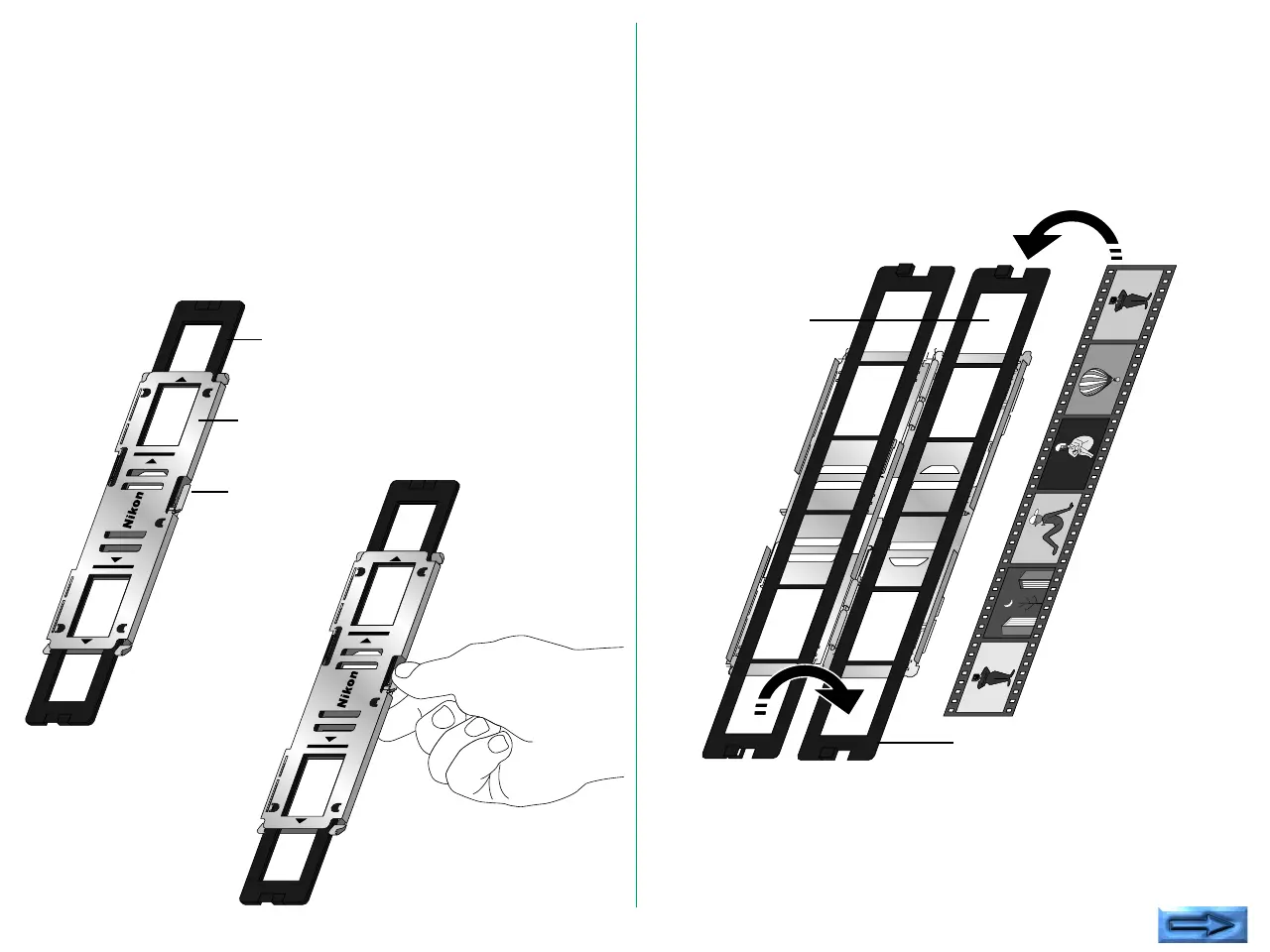 Insert the film strip into the attached film holder FH-2, and then