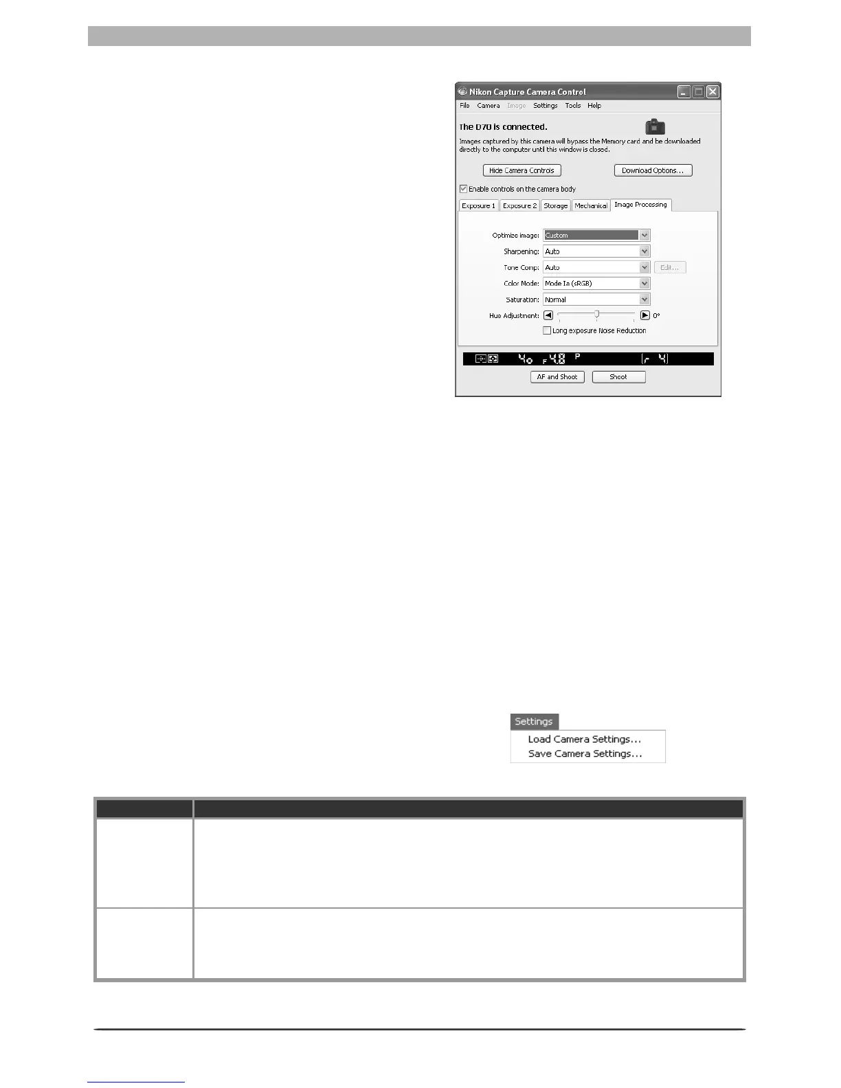 tings menu is used to save Nikon Capture