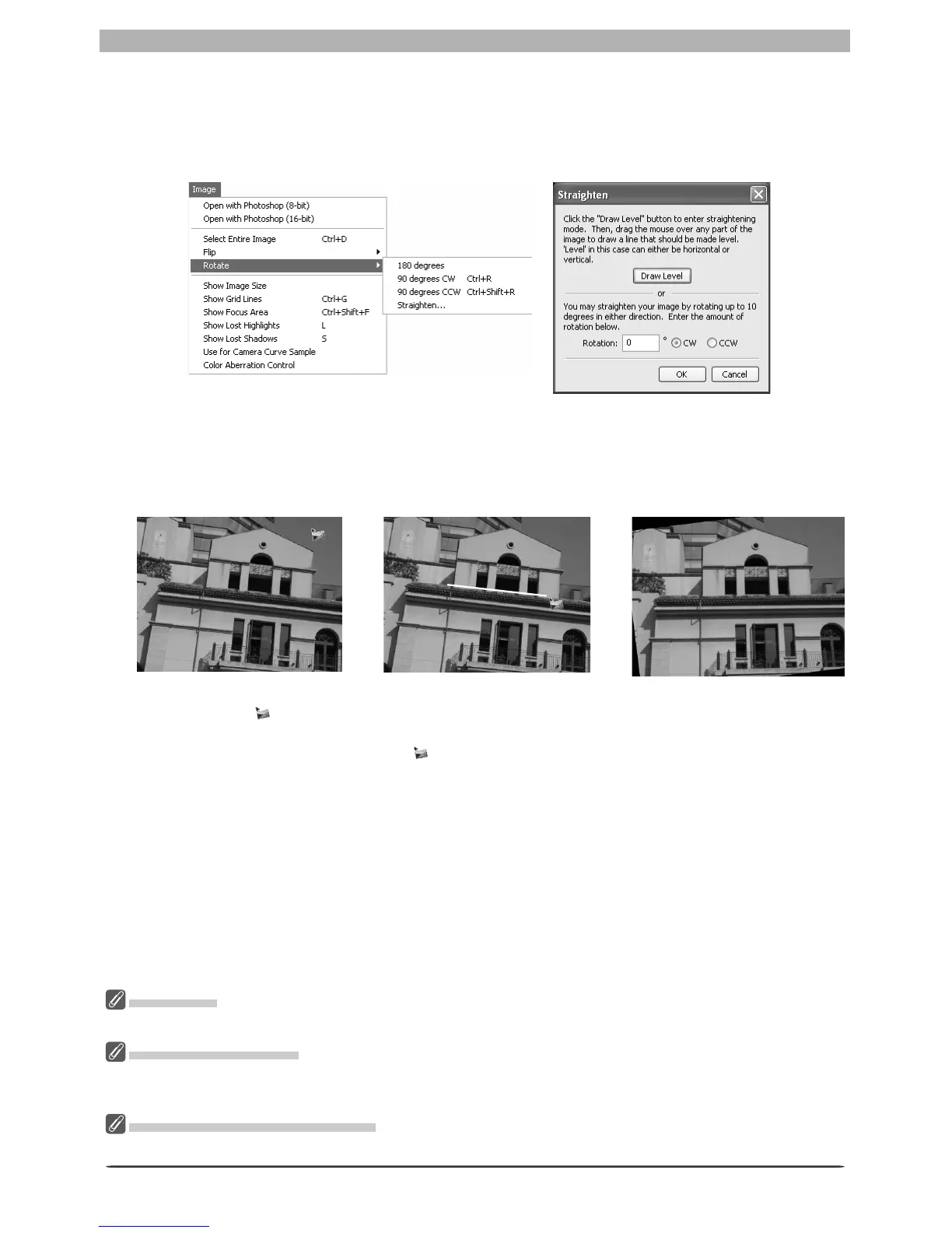 Straighten the image using the Draw Level button or by entering the desired rotation in