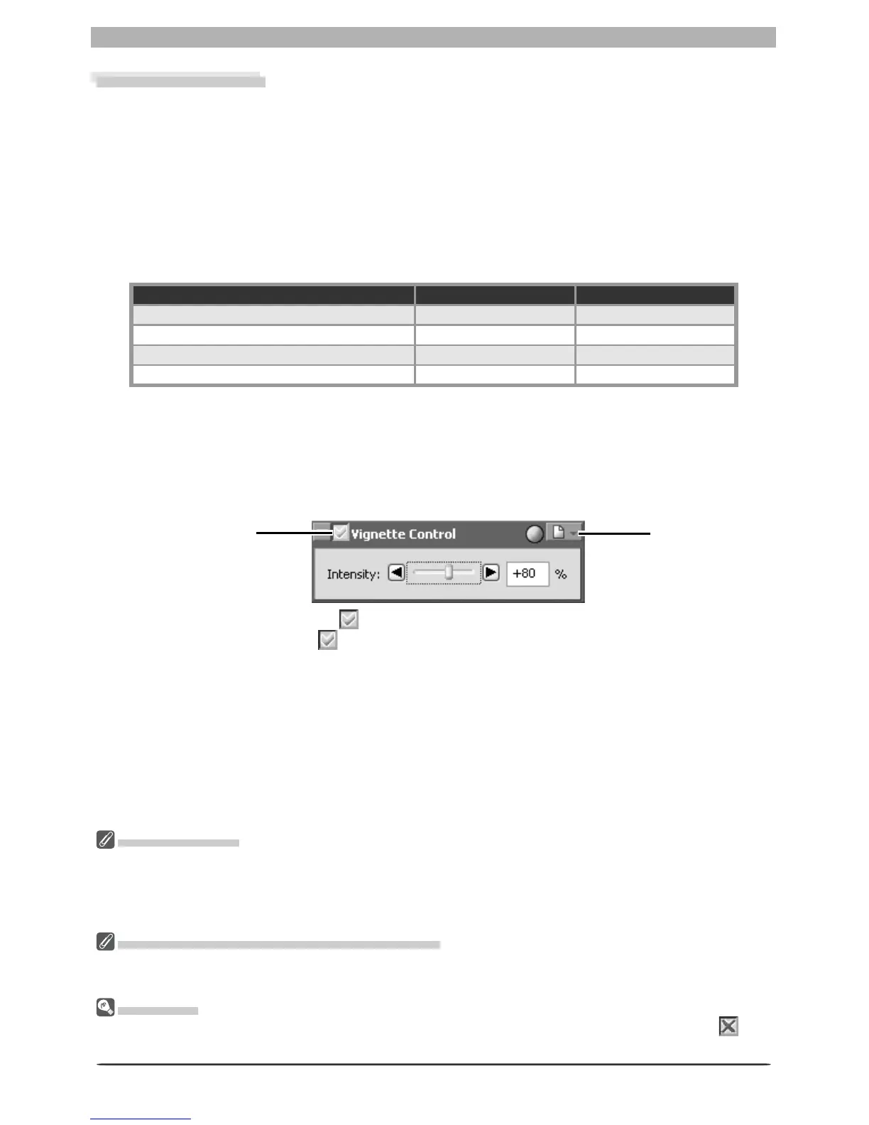 Vignette control can be performed manually by dragging the Intensity slider or entering