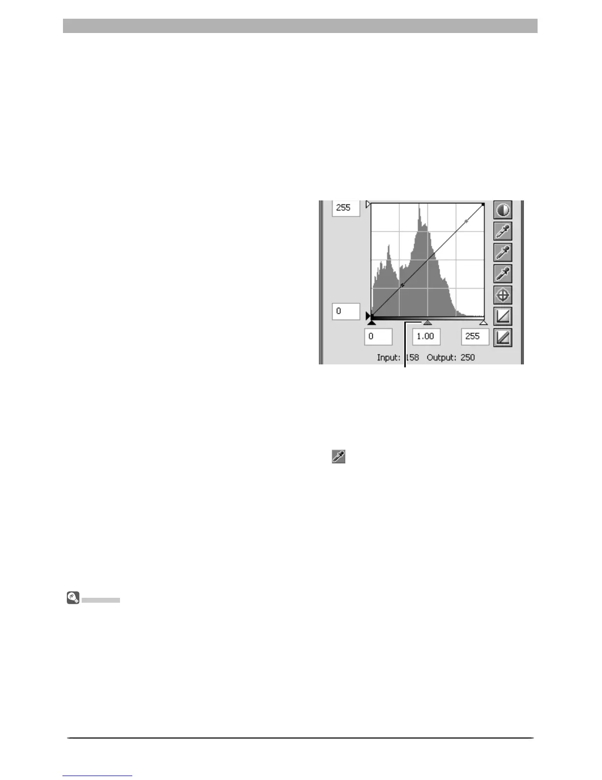 right, lowering mid-tone output values and darkening the image. The de fault value for gamma is one,