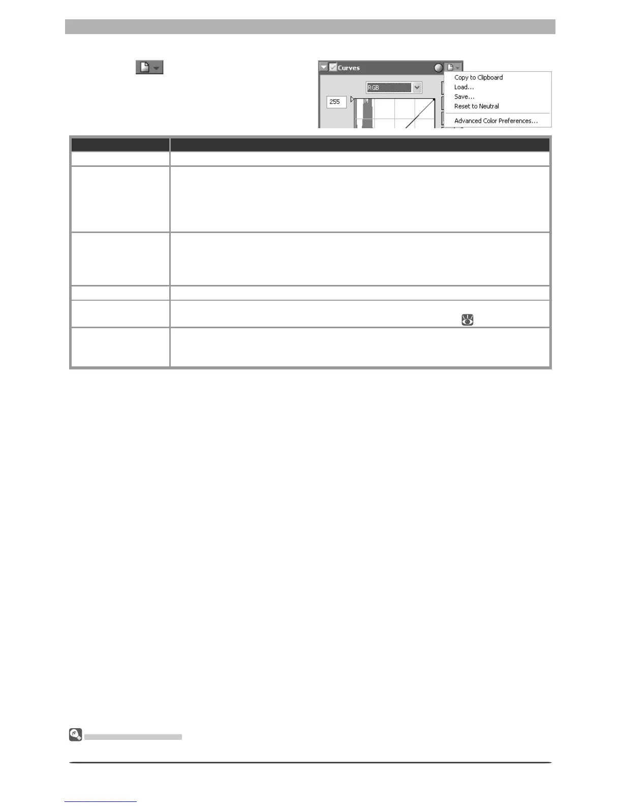 Selecting a fi le from the list sets the controls in Curves palette to the saved set-