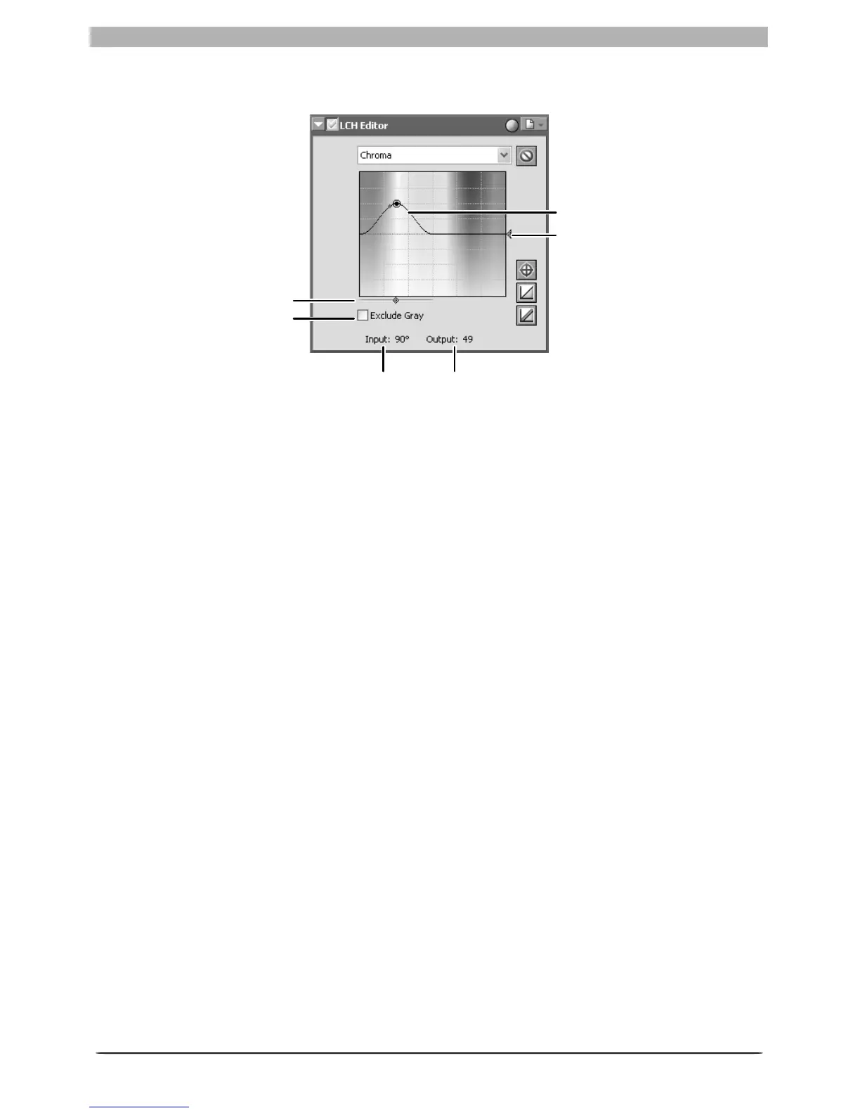 Chroma curve: Maps chroma in the original image (input) to the chroma of the image after
