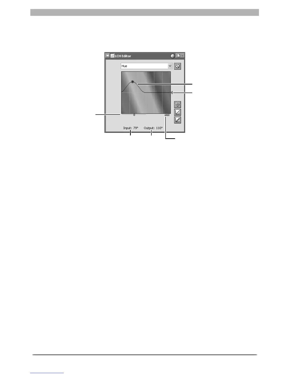 The hue editor is used to map selected colors in the original (input) image to a specifi c range