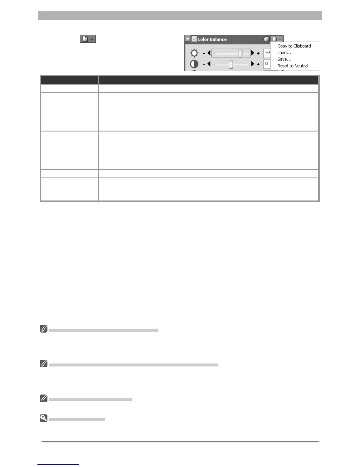 Copy to Clip board Copy current Color Balance settings to the clipboard.