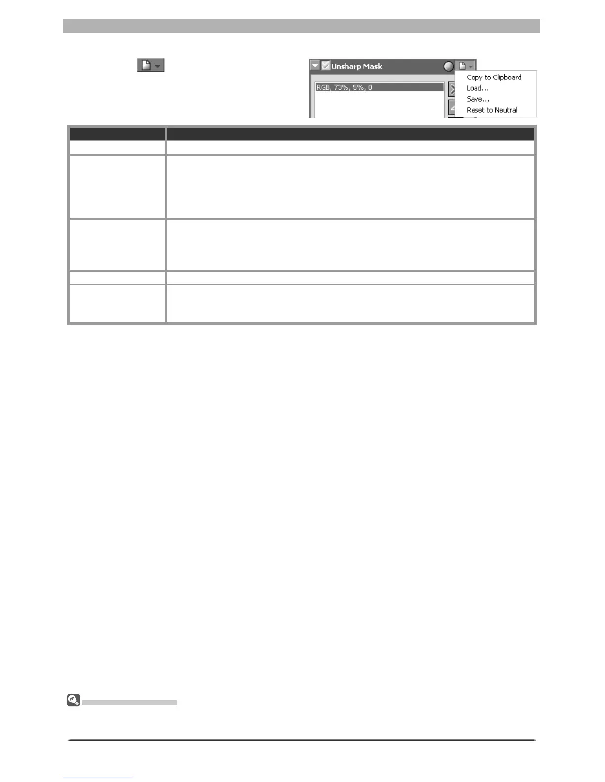 Select this item to save Unsharp Mask settings to a named fi le. These settings