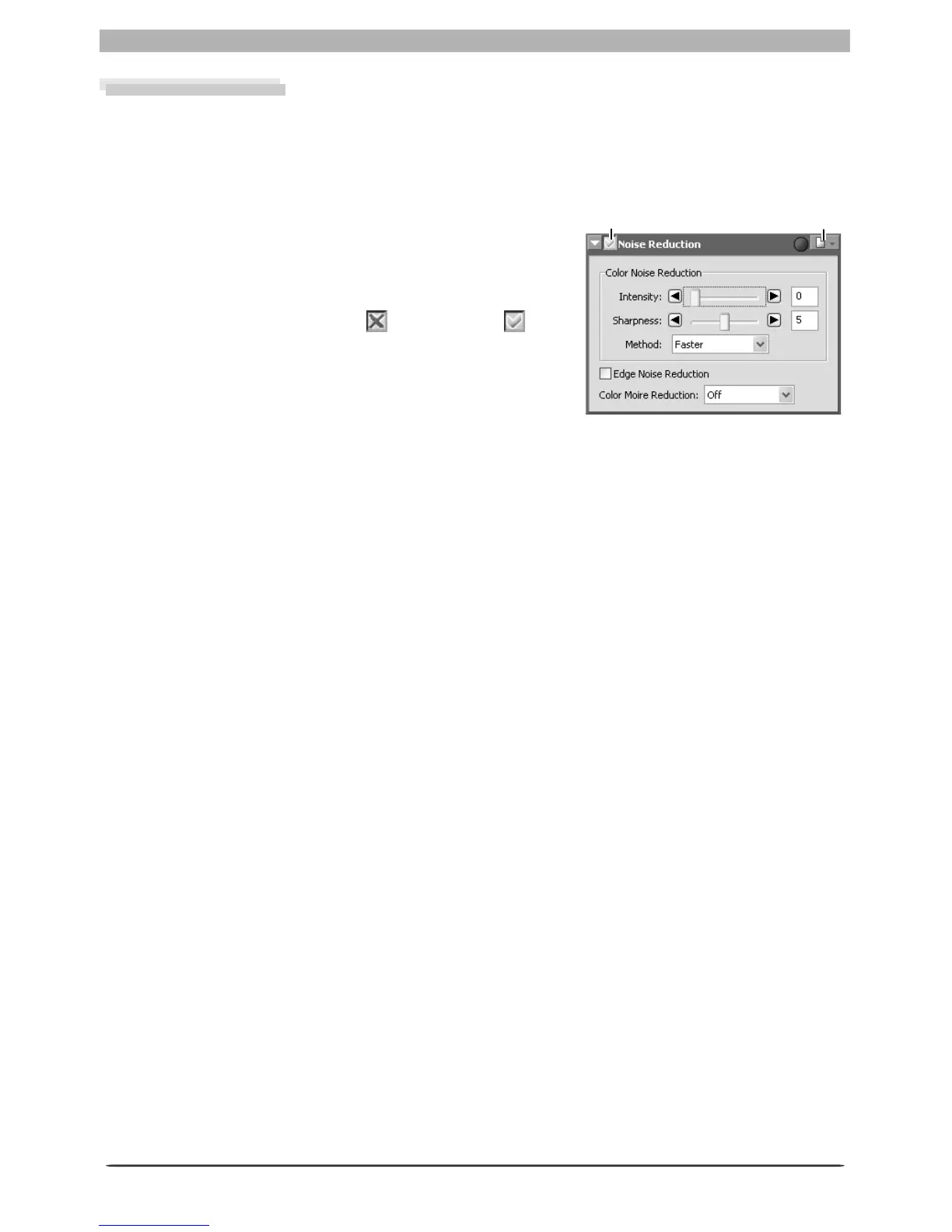 Confi rm the effects of noise reduction on the entire image and adjust settings as neces-