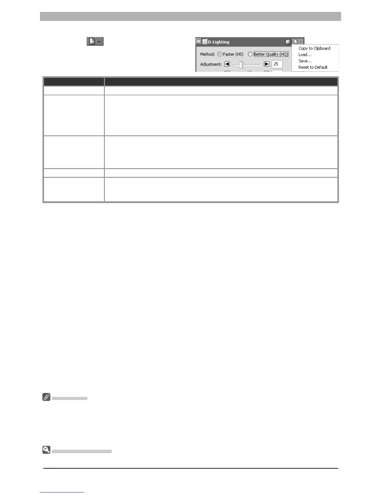 Copy to Clip board Copy current D-Lighting settings to the clipboard.