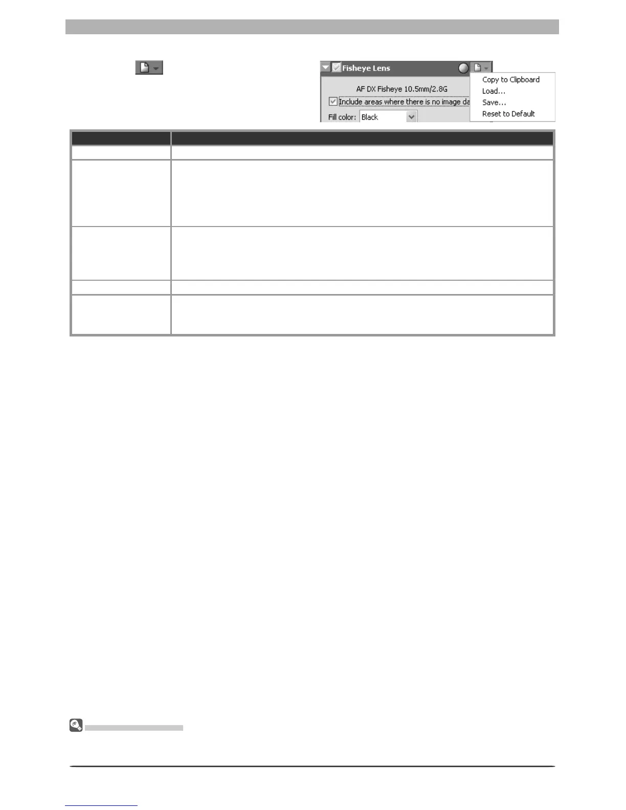 extension “.nfe” will be dis played). The set tings in the Fisheye Lens palette will