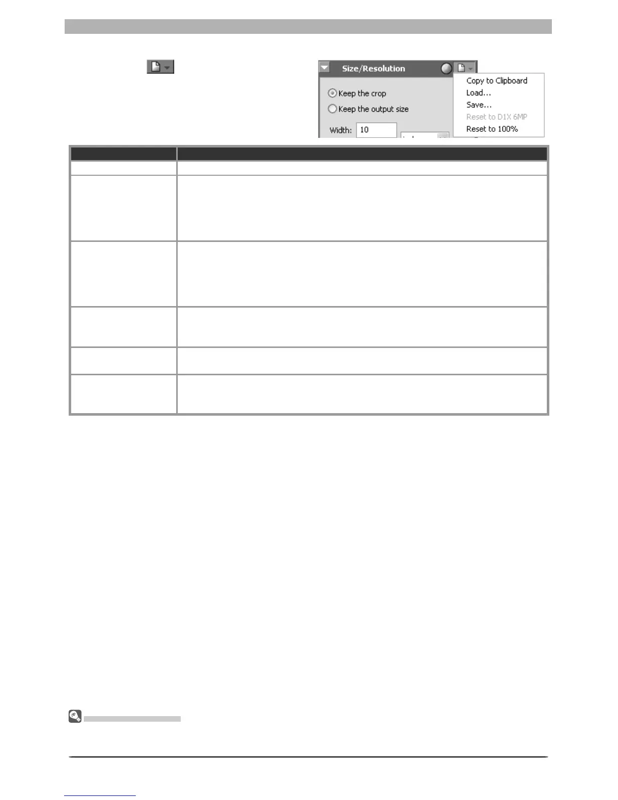 Copy to Clip board Copy current Size/Resolution settings to the clipboard.