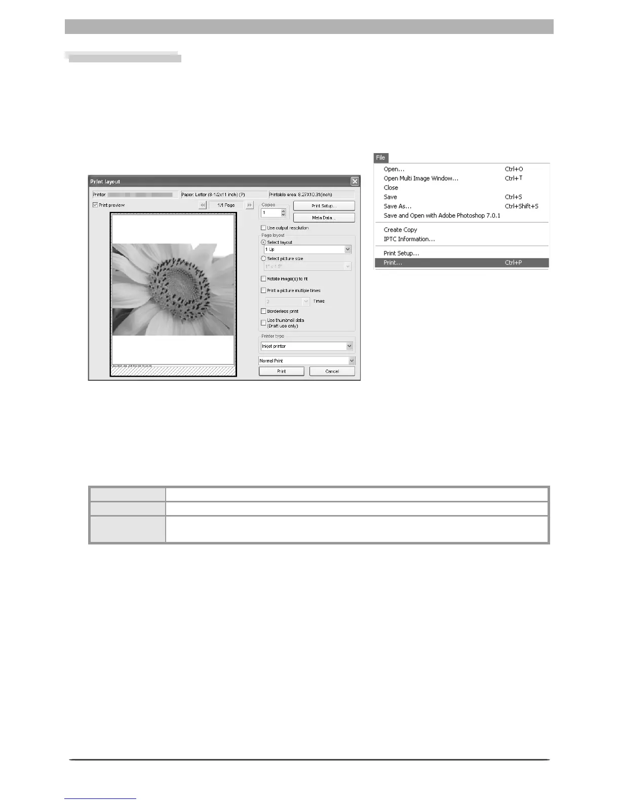 Adjust settings as described below and click Print to print the image. Click Cancel to exit