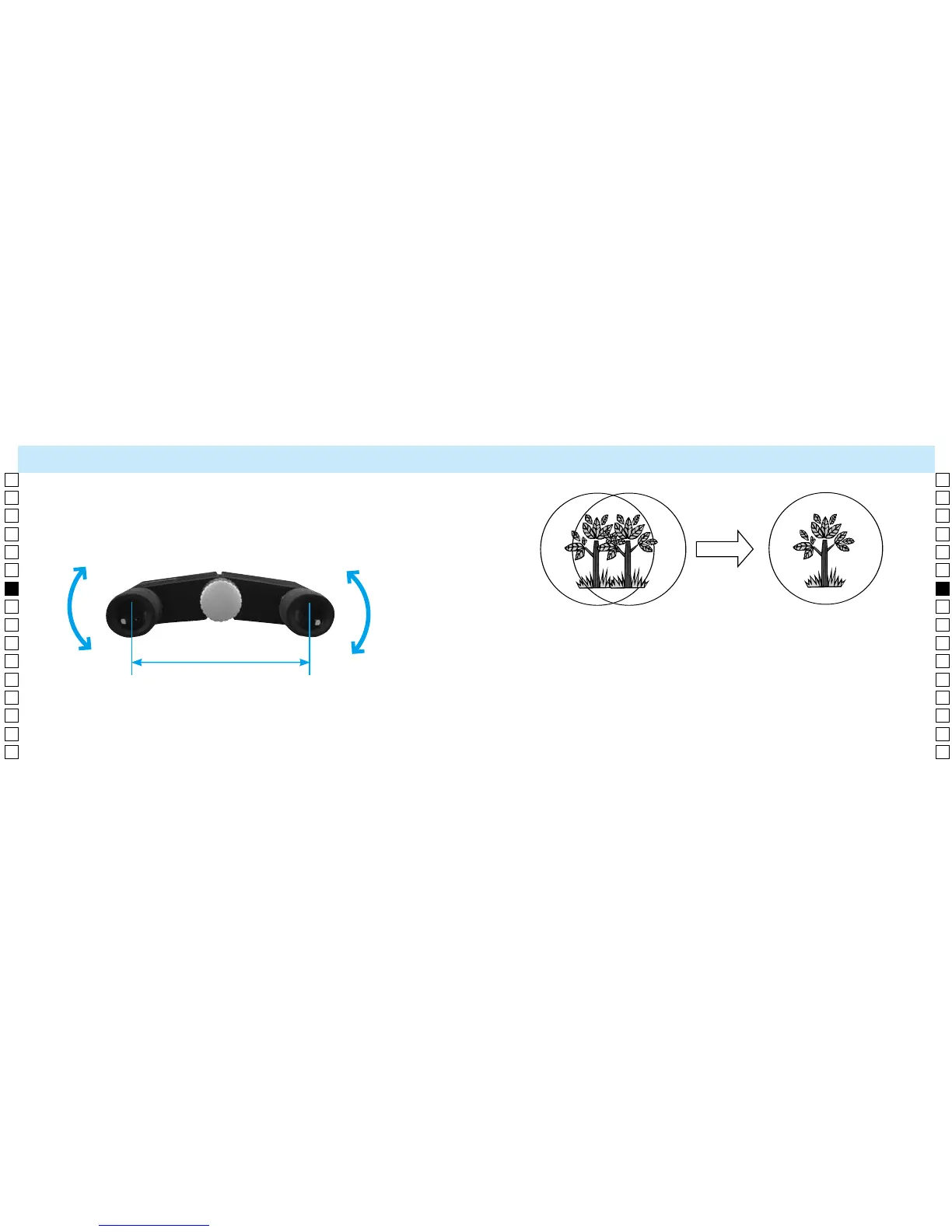 Наблюдая объект через бинокуляры, осторожно поворачивайте корпус бинокля так,