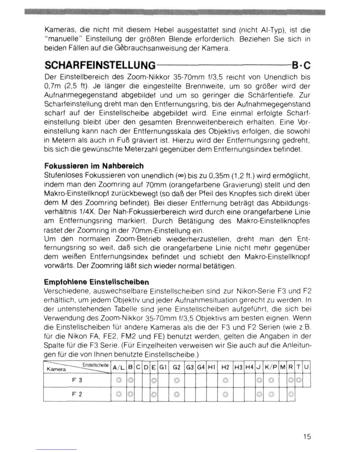 die Einstellscheiben lur andere Kameras als die der F3 und F2 Serien (wie z.B.