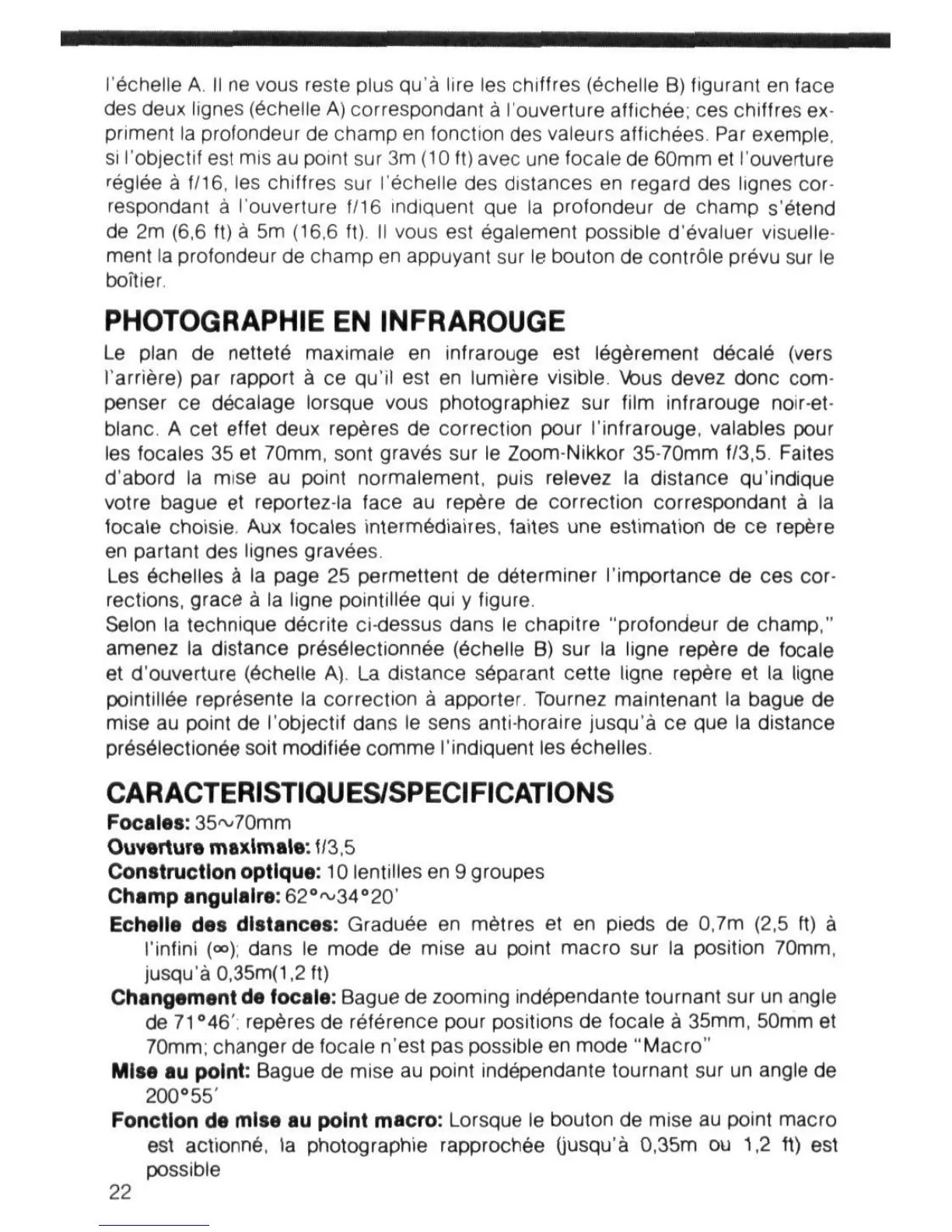 les focales 35 et 70mm, sont graves sur le Zoom-Nikkor 35-70mm f/3,5. Faites