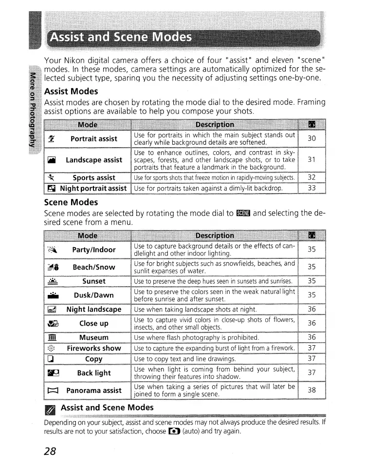 Nikon CoolPix 4100 - Assist; Scene Modes