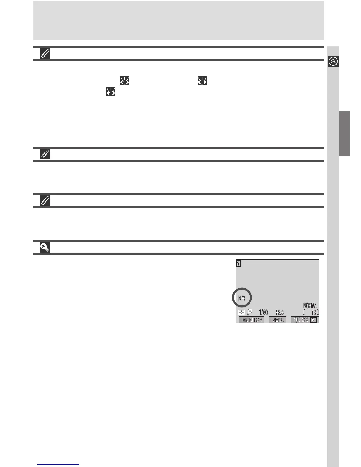 While noise reduction is in effect, an NR icon ap-