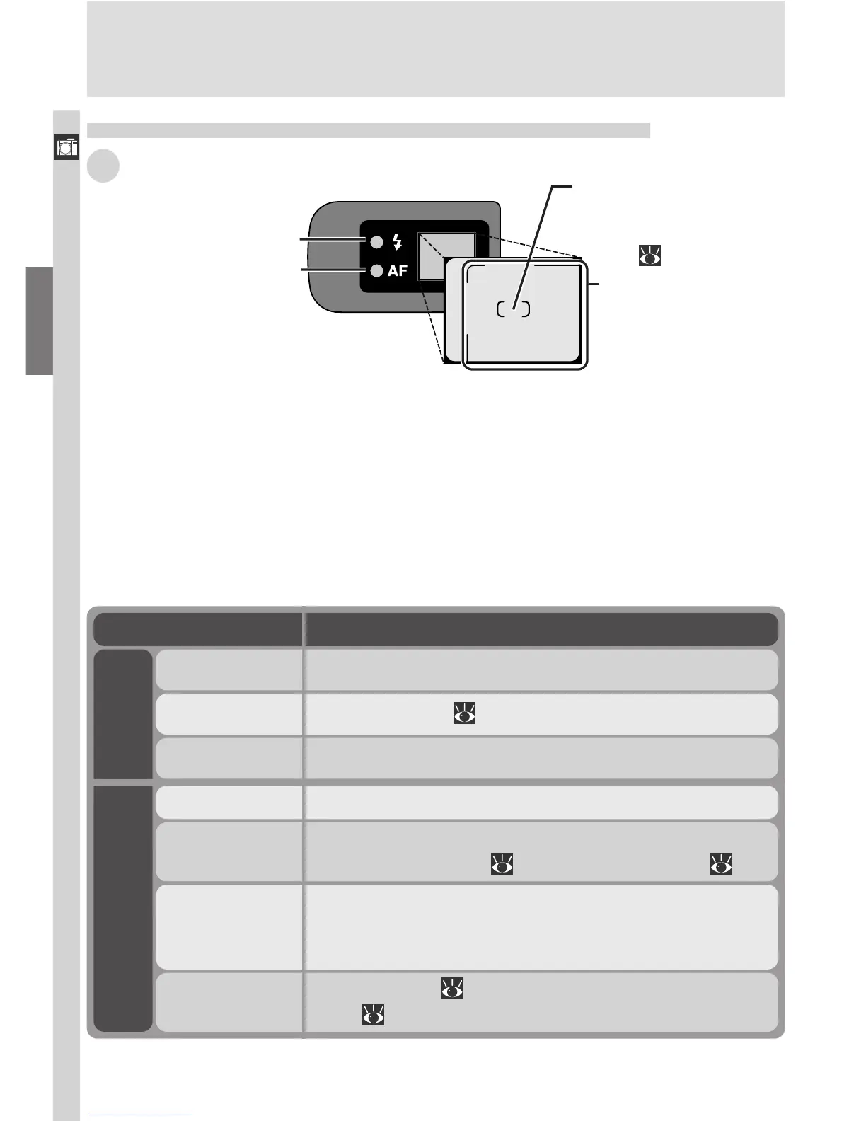 The two lamps next to the viewfinder provide a guide to camera status while