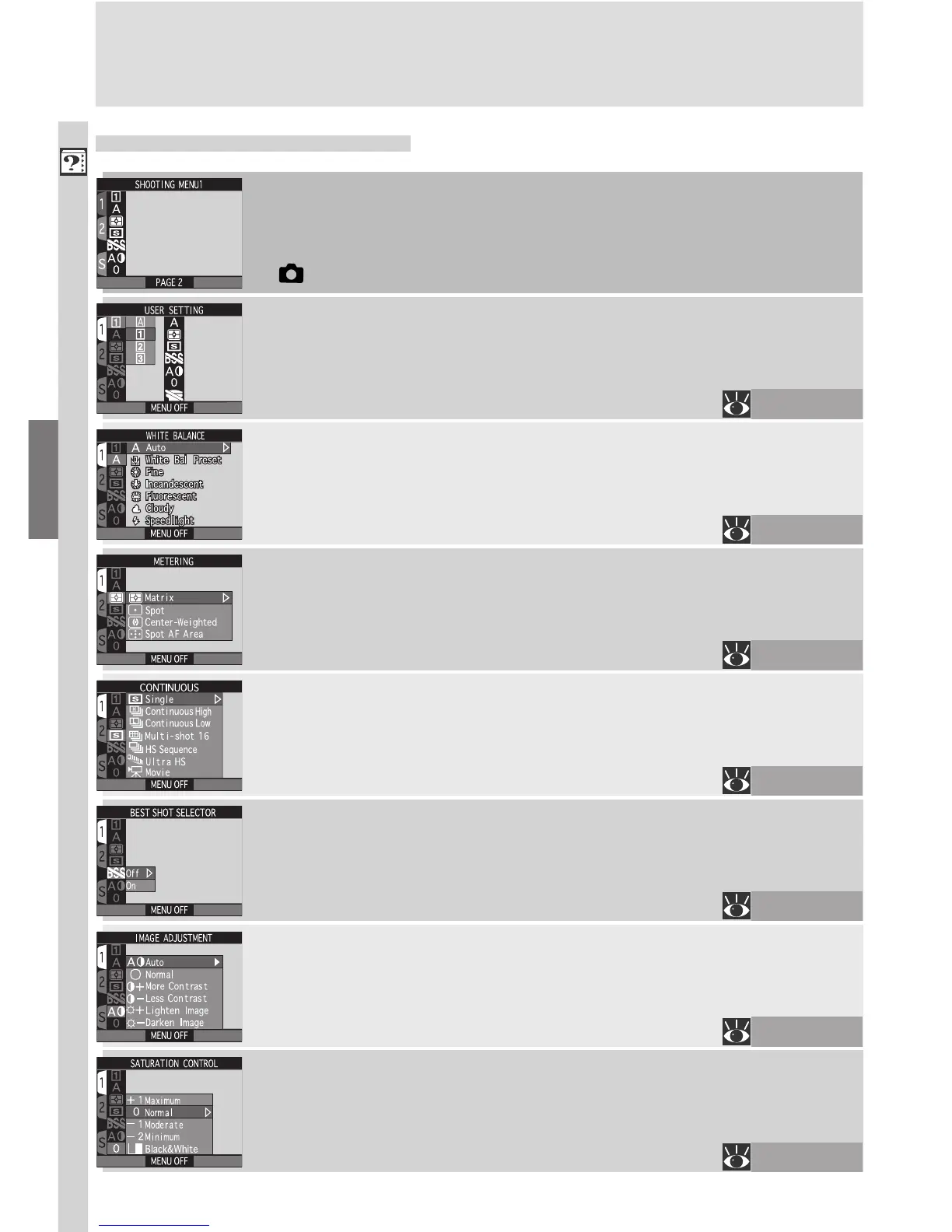 SHOOTING Menu, Page 1