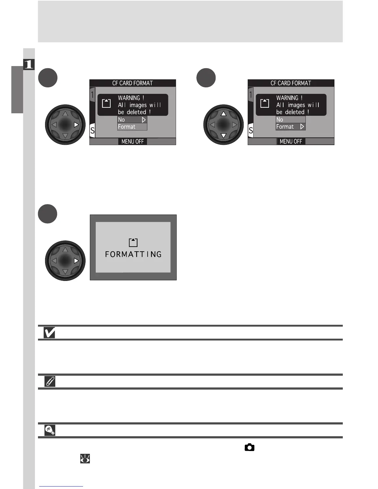 Formatting permanently deletes all data on the memory card. Before format-