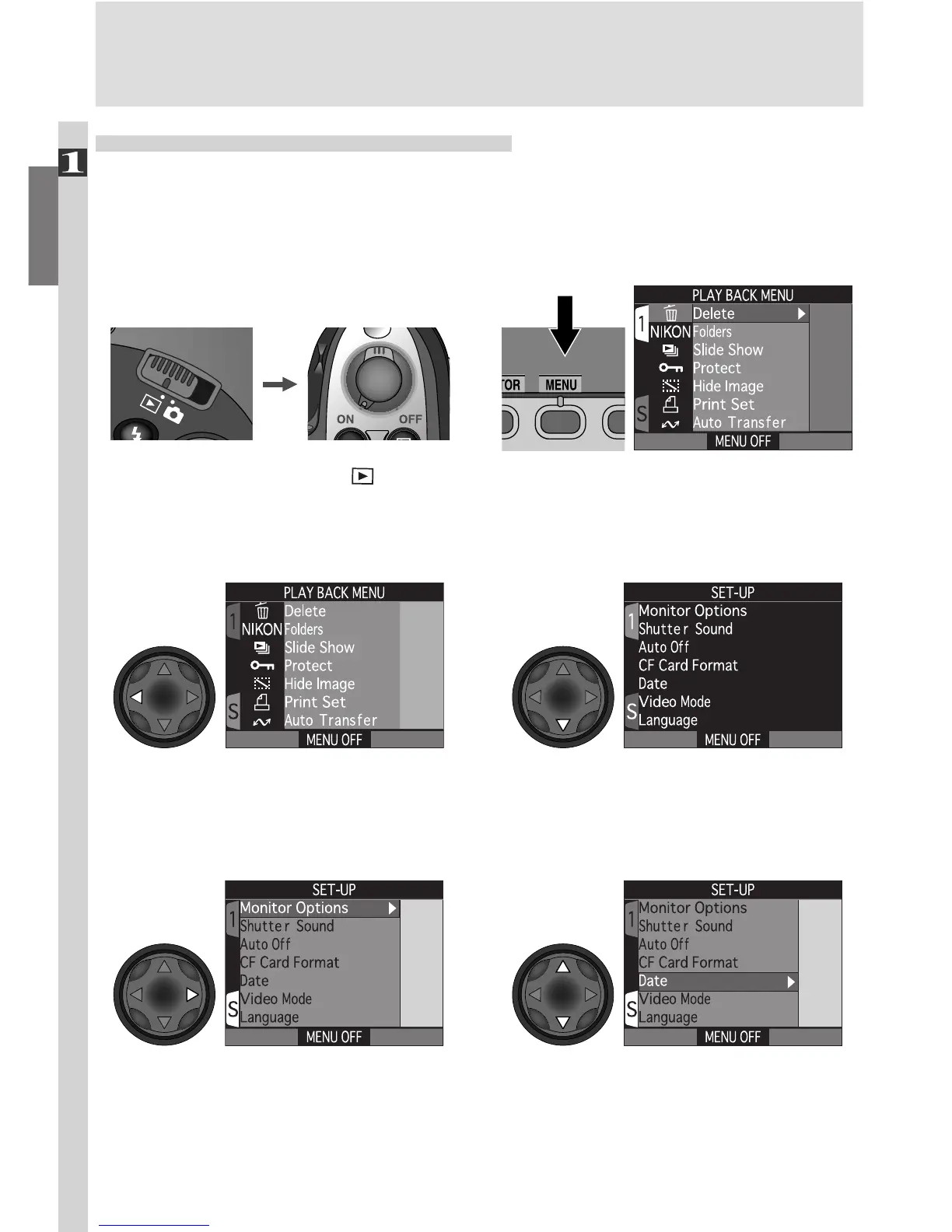 Position cursor in SET-UP menu Highlight Date