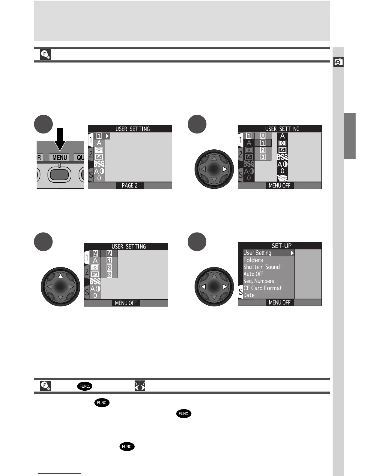 SHOOTING menu with USER SETTING