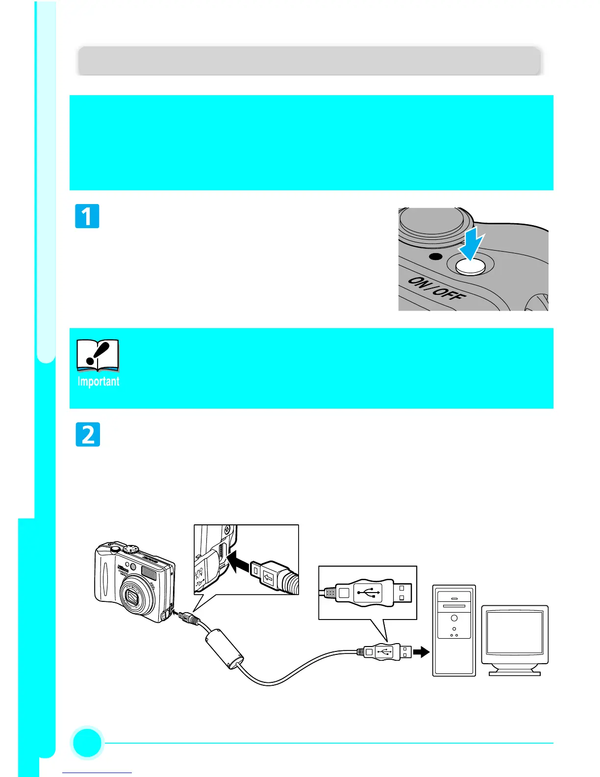 Be sure to install PictureProject before connecting the camera to your