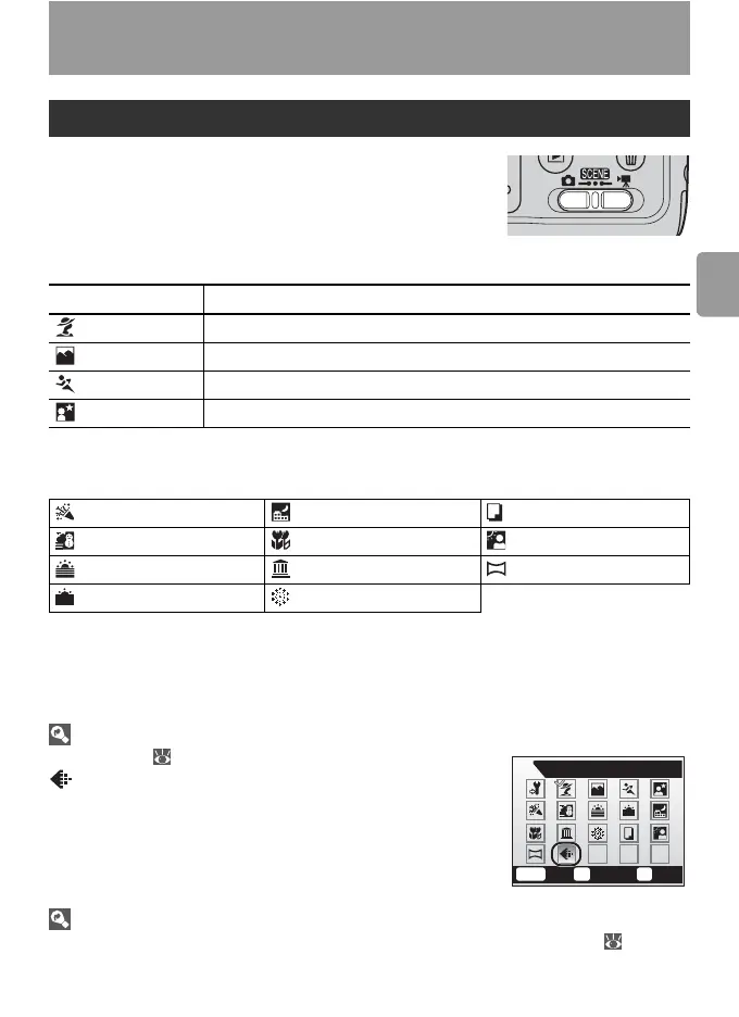 See the Appendix for information on the settings available in scene mode ( 90).