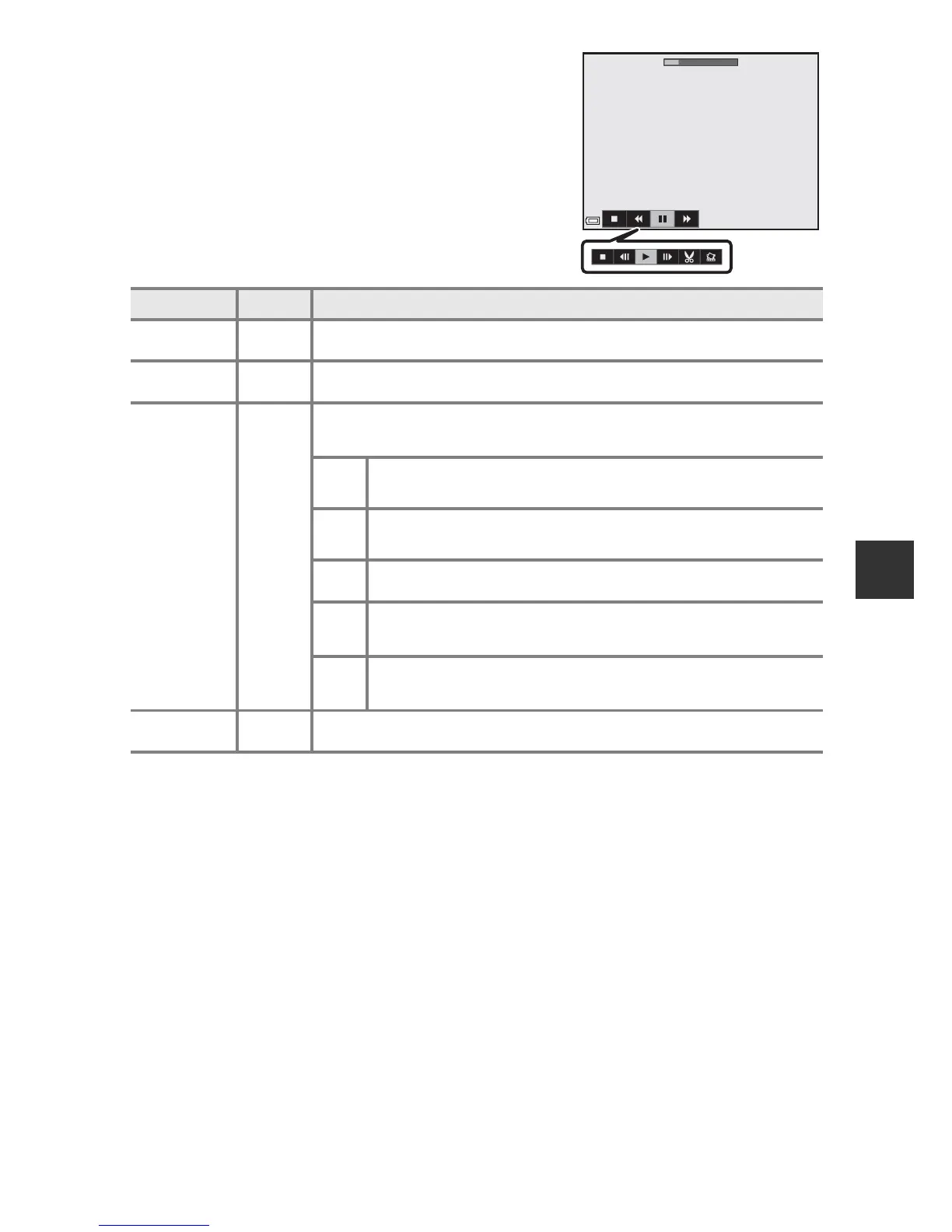 Pause playback. The operations listed below can be