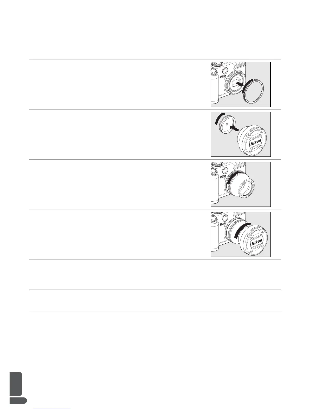 opcionales. Para retirar el conversor, apague la cámara y siga los pasos 1 a 4 en