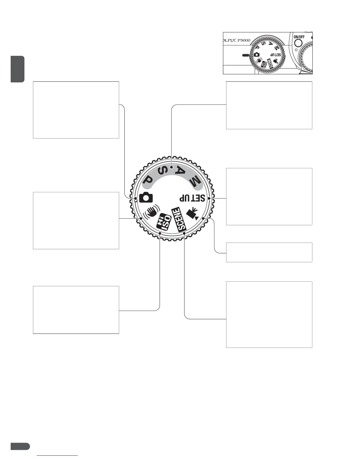 la marca que está al lado del dial de modo.