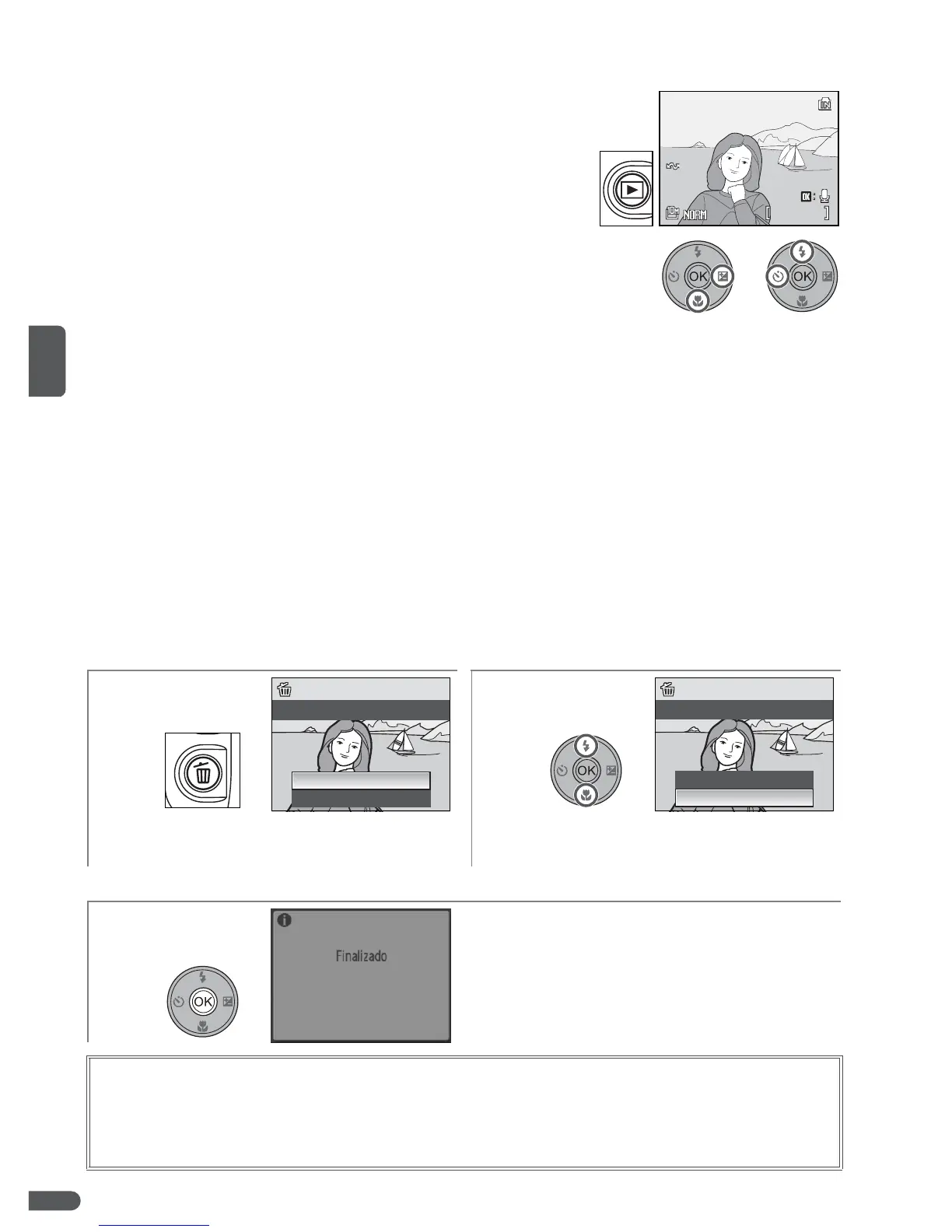 Para borrar la fotografía más reciente, pulse el botón I mientras la cámara se encuentra