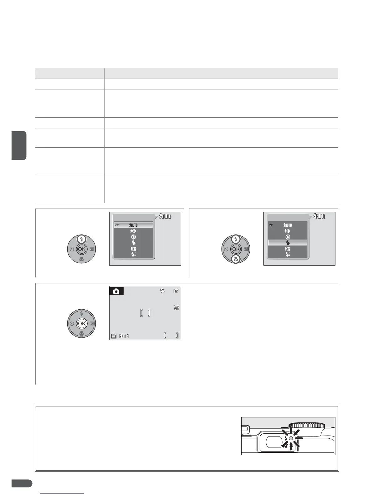 S Horquillado El flash destella automáticamente cuando hay poca luz.