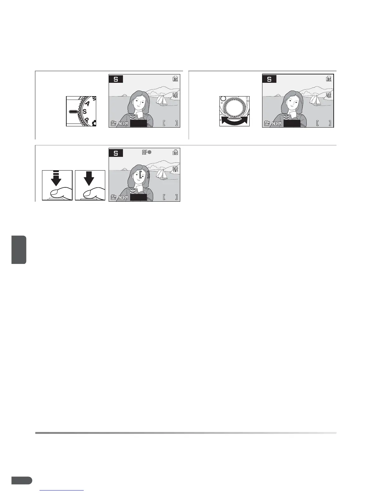 Gire el dial de modo hasta S. Elija la velocidad de obturación.