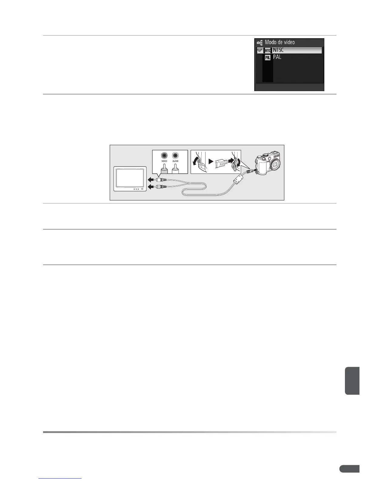 suministrado. Conecte la clavija negra en la cámara, la clavija amarilla en la