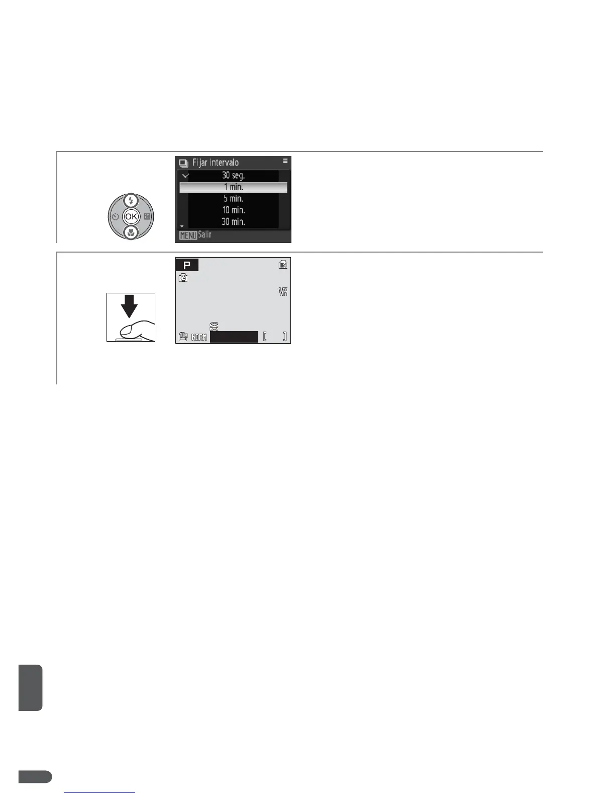 Para visualizar el menú del disparo a intervalos, sobresalte Disparo a intervalos