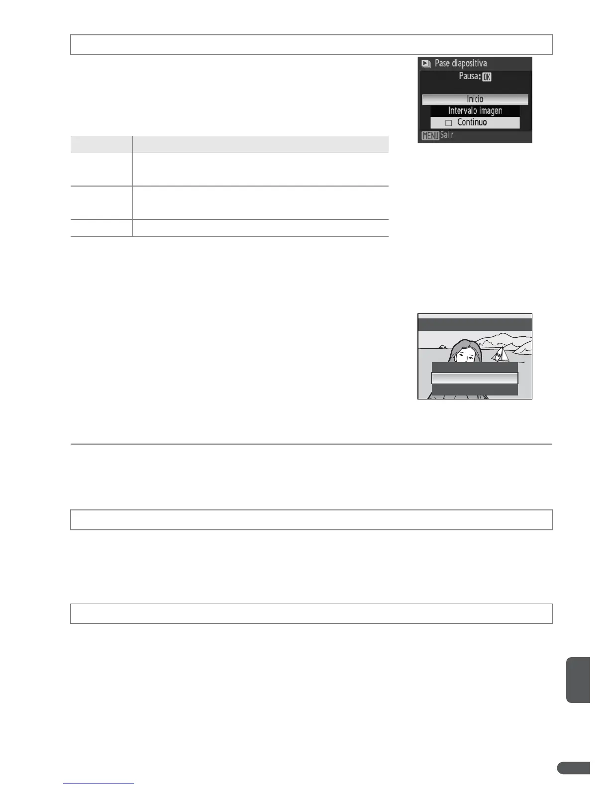 Mientras se esté desarrollando el pase de diapositivas, pulse el multiselector a la