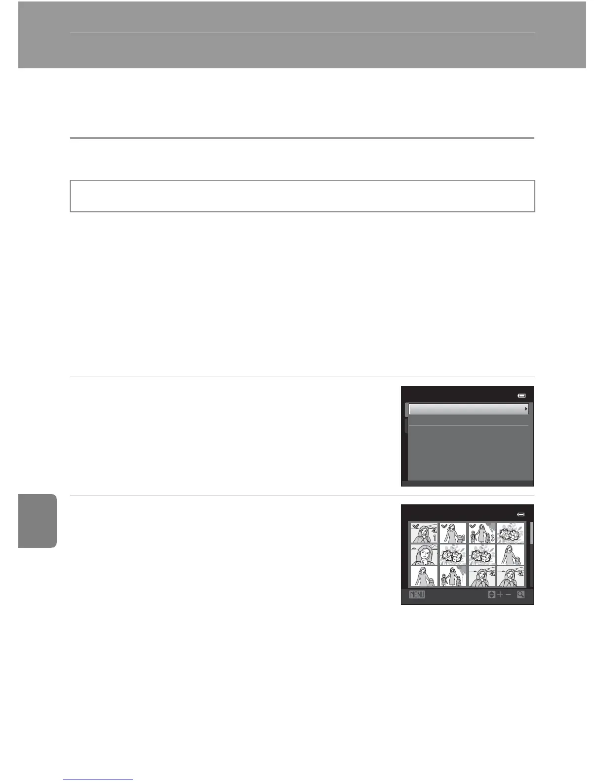• See “Editing Images (Still Images)” (E10) for information about image editing