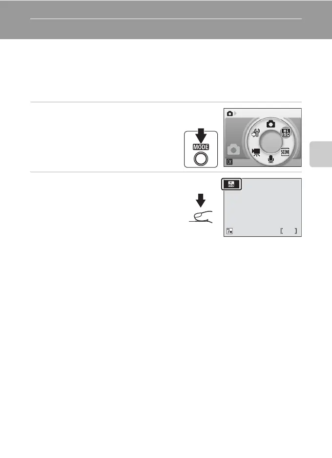 In anti-shake mode, vibration reduction (c 114) and BSS (c 95) are enabled to reduce blur-