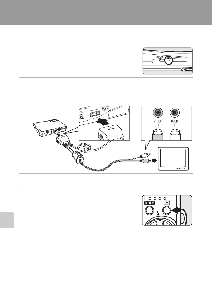 Be sure that the camera’s video mode setting conforms to the standard used by your television.