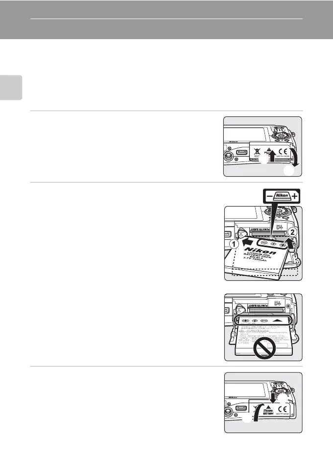 Insert a Rechargeable Li-ion Battery EN-EL8 (supplied) into the camera.