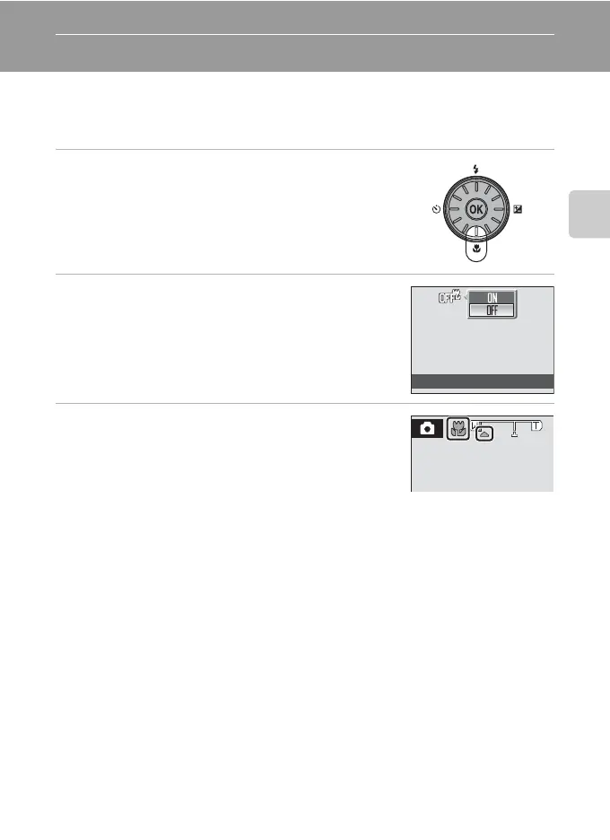 Macro mode is used for taking pictures of objects as close as 2 cm (0.8 in.). Note that