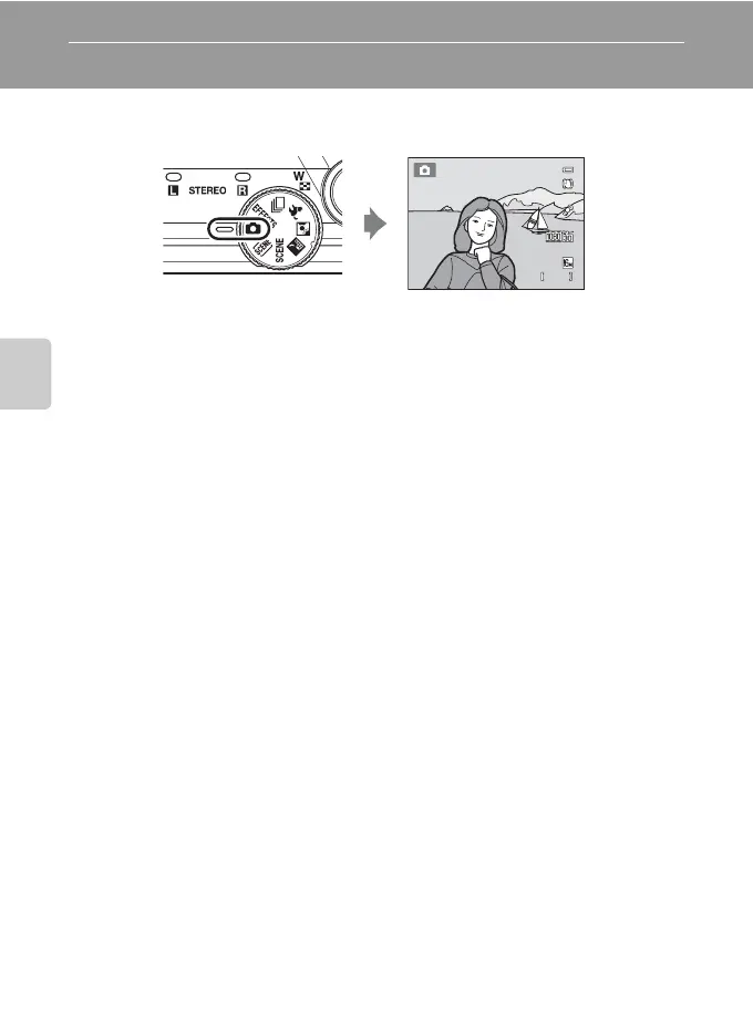 Used for general shooting. Settings can be adjusted in the shooting menu (A 37)