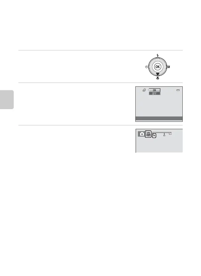 • Macro mode cannot be used when using certain shooting modes. See “Default Settings” (A 69)
